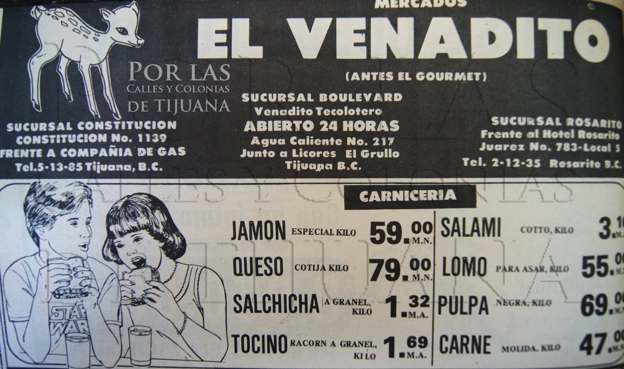 Antes de que existieran los Oxxos, estaba el Mercado El Venadito, muy querido por los tijuanenses. Incluso había una sucursal en Rosarito, Cantamar, Tecate y Ensenada. Ahí se podía encontrar desde licorería hasta carnicería, y muchos de estos locales operaban 24 horas. Fue tanta su popularidad que, en 1970, Mexicali abrió el primero, llegando a tener 38 mercados. Para 2021 aún quedaban algunos, pero terminaron cerrando.