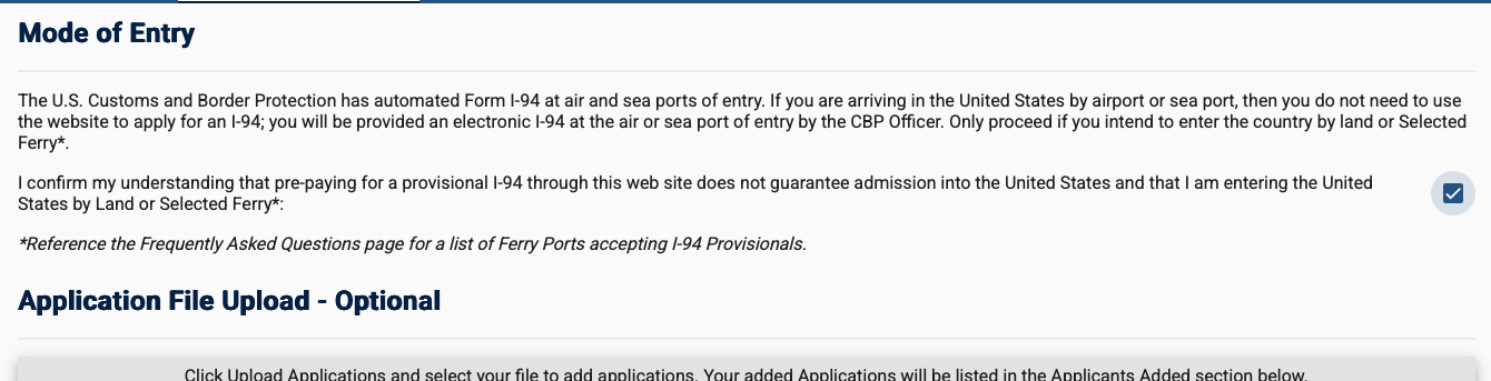 - Toca en la opción “Apply for I-94 in advance” (solicitar I-94 por adelantado).